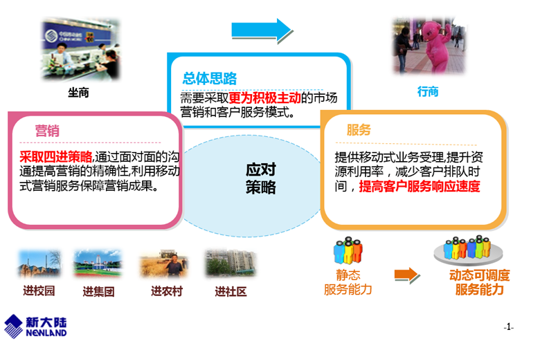 根据移动公司“坐商连锁化、行商属地化、电商集中化”的协同运营总体原则,面向各类一线员工(社区经理、营业员、渠道经理、集团客户经理、末梢、外勤等)提供全方面支撑,有效助力行商工作。